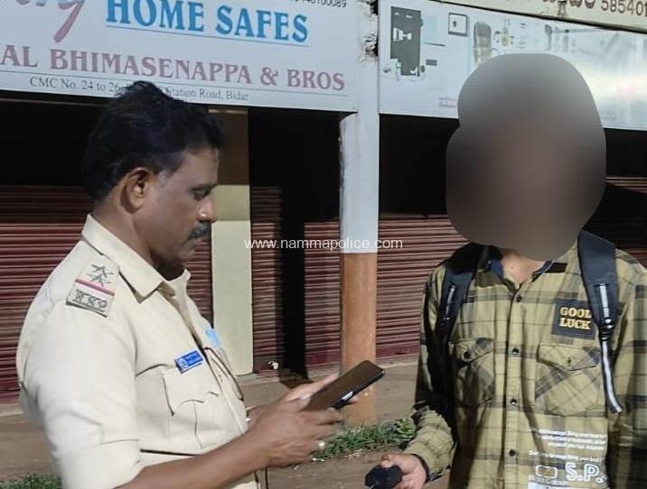 ಬೀದರ ಜಿಲ್ಲೆಯಲ್ಲಿ ಪೊಲೀಸ್ ಅಧಿಕಾರಿ, ಸಿಬ್ಬಂದಿರವರು ರಾತ್ರಿ ಗಸ್ತು ಕರ್ತವ್ಯವನ್ನು ಅತೀ ಚುರುಕಾಗಿ ಅನುಮಾಸ್ಪದ ವ್ಯಕ್ತಿಗಳ ಮೇಲೆ ಹದ್ದಿನ ಕಣ್ಣನ್ನು ಇಟ್ಟಿದ್ದು, ನಿನ್ನೆ ರಾತ್ರಿ ಬೀದರ ನಗರದ ರಾತ್ರಿ ಗಸ್ತು ಚೇಕಿಂಗ್ ಕರ್ತವ್ಯದಲ್ಲಿದ್ದ ಮಾರ್ಕೇಟ್ ಪೊಲೀಸ್ ಠಾಣೆಯ ಅಪರಾಧ ವಿಭಾಗದ ಪಿ.ಎಸ್.ಐ ಶ್ರೀ ಅಬ್ದುಲ್ ಜಬ್ಬಾರ ರವರು ರಾತ್ರಿ ಗಸ್ತು ಕರ್ತವ್ಯದಲ್ಲಿರುವ ಸಿಬ್ಬಂದಿರವರೊಂದಿಗೆ ಅನುಮಾನಾಸ್ಪದ ವ್ಯಕ್ತಿಯೊಬ್ಬನನ್ನು ಎಮ್.ಸಿ.ಸಿ.ಟಿ.ಎನ್.ಎಸ್ ತಂತ್ರಾಂಶದಲ್ಲಿ ಪರಿಶೀಲಿಸಿ ವಿಚಾರಣೆ ಮಾಡಿ ಕಳುಹಿಸಿರುತ್ತಾರೆ.