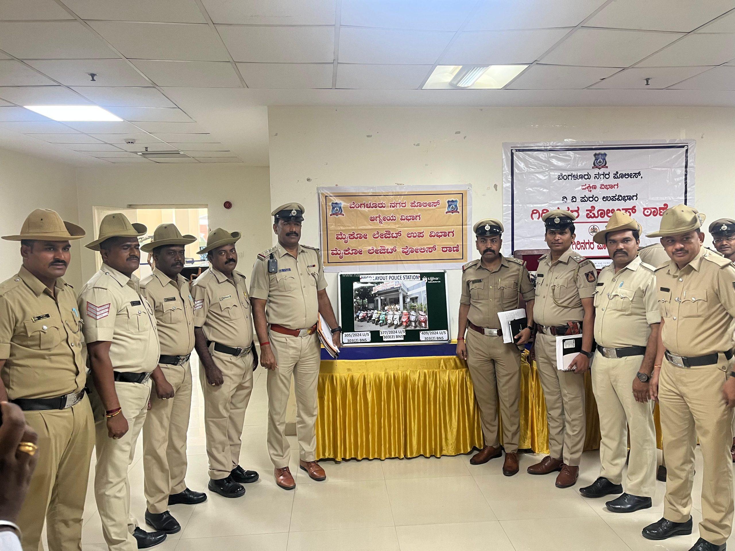 ಮೈಕೋಲೇಔಟ್ ಪೊಲೀಸ್ ಠಾಣಾ ಸರಹದ್ದಿನ ಬಿಳೇಕಳ್ಳಿಯಲ್ಲಿರುವ ಅಪಾರ್ಟ್ ಮೆಂಟ್ವೊಂದರಲ್ಲಿ ವಾಸವಿರುವ ಪಿರಾದುದಾರರು, ದಿನಾಂಕ:08/08/2024 ರಂದು ಮೈಕೋಲೇಔಟ್ ಪೊಲೀಸ್ ಠಾಣೆಯಲ್ಲಿ ದೂರನ್ನು ಸಲ್ಲಿಸಿರುತ್ತಾರೆ. ದೂರಿನಲ್ಲಿ ದಿನಾಂಕ:06/08/2024 ರಂದು ಮಧ್ಯಾಹ್ನ ಅಪಾರ್ಟ್ ಮೆಂಟ್ ಮುಂದೆ ಪಿರಾದುದಾರರು ದ್ವಿ-ಚಕ್ರ ವಾಹನವನ್ನು ಲಾಕ್ ಮಾಡಿ, ಕೀಯನ್ನು ಅಲ್ಲಿ ಬಿಟ್ಟು ಹೋಗಿರುತ್ತಾರೆ. ವಾಪಸ್ ಬಂದು ದ್ವಿ-ಚಕ್ರ ವಾಹನವನ್ನು ನೋಡಲಾಗಿ, ಯಾರೋ ಅಪರಿಚಿತರು ದ್ವಿ-ಚಕ್ರ ವಾಹನವನ್ನು ಕಳವು ಮಾಡಿಕೊಂಡು ಹೋಗಿರುವುದಾಗಿ ದೂರಿನಲ್ಲಿ ತಿಳಿಸಿರುತ್ತಾರೆ. ಈ ಕುರಿತು ಮೈಕೋಲೇಔಟ್ ಪೊಲೀಸ್ ಠಾಣೆಯಲ್ಲಿ ದ್ವಿ-ಚಕ್ರ ವಾಹನ ಕಳವು ಪ್ರಕರಣ ದಾಖಲಾಗಿರುತ್ತದೆ. ಹಾಗೂ ಇದೇ ರೀತಿಯ ಮತ್ತೆರಡು ದ್ವಿ-ಚಕ್ರ ವಾಹನ ಕಳವು ಪ್ರಕರಣಗಳು ಸಹ ಇದೇ ಅವದಿಯಲ್ಲಿ ದಾಖಲಾಗಿರುತ್ತವೆ.